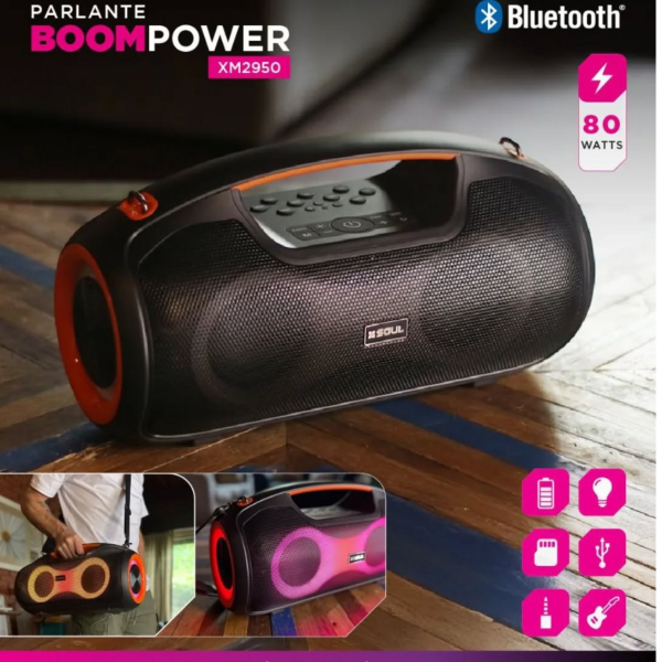 Descubre el Parlante Bluetooth SOUL BOOM POW XM2950, diseñado para quienes buscan calidad de sonido y portabilidad. Con una potencia de salida de 80W, este parlante ofrece un sonido envolvente gracias a su configuración estéreo y sus dos parlantes de rango completo. Ideal para llevar a cualquier lugar, su diseño resistente al agua lo convierte en el compañero perfecto para tus aventuras al aire libre. La autonomía de la batería alcanza hasta 4 horas, permitiéndote disfrutar de tu música sin interrupciones. Su conectividad Bluetooth asegura una fácil vinculación con tus dispositivos, mientras que su carga mediante USB tipo C garantiza una recarga rápida y eficiente. Este parlante es la opción ideal para quienes valoran la calidad de audio y la comodidad en un solo producto.