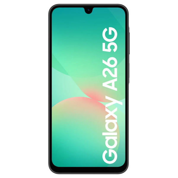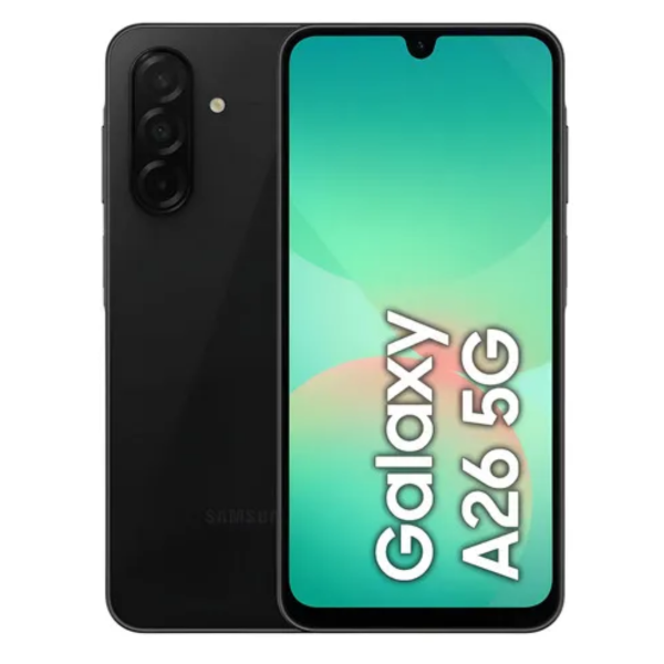 Galaxy A26 5G presenta un diseño fino y plano con un cuerpo de 7,7 mm, disponible en tres vibrantes colores -Negro, Blanco y Menta- con una elegante parte trasera de cristal resaltada por una disposición lineal agrupada de la cámara. La pantalla Super AMOLED FHD+ de 6,7 pulgadas cuenta con biseles delgados para una experiencia visual más envolvente. Disfruta de la tranquilidad de una durabilidad fiable, que incluye una clasificación IP67 de resistencia al agua y al polvo, seguridad Samsung Knox Vault con certificación EAL5+, así como 6 actualizaciones del sistema operativo y 6 años de actualizaciones de seguridad.